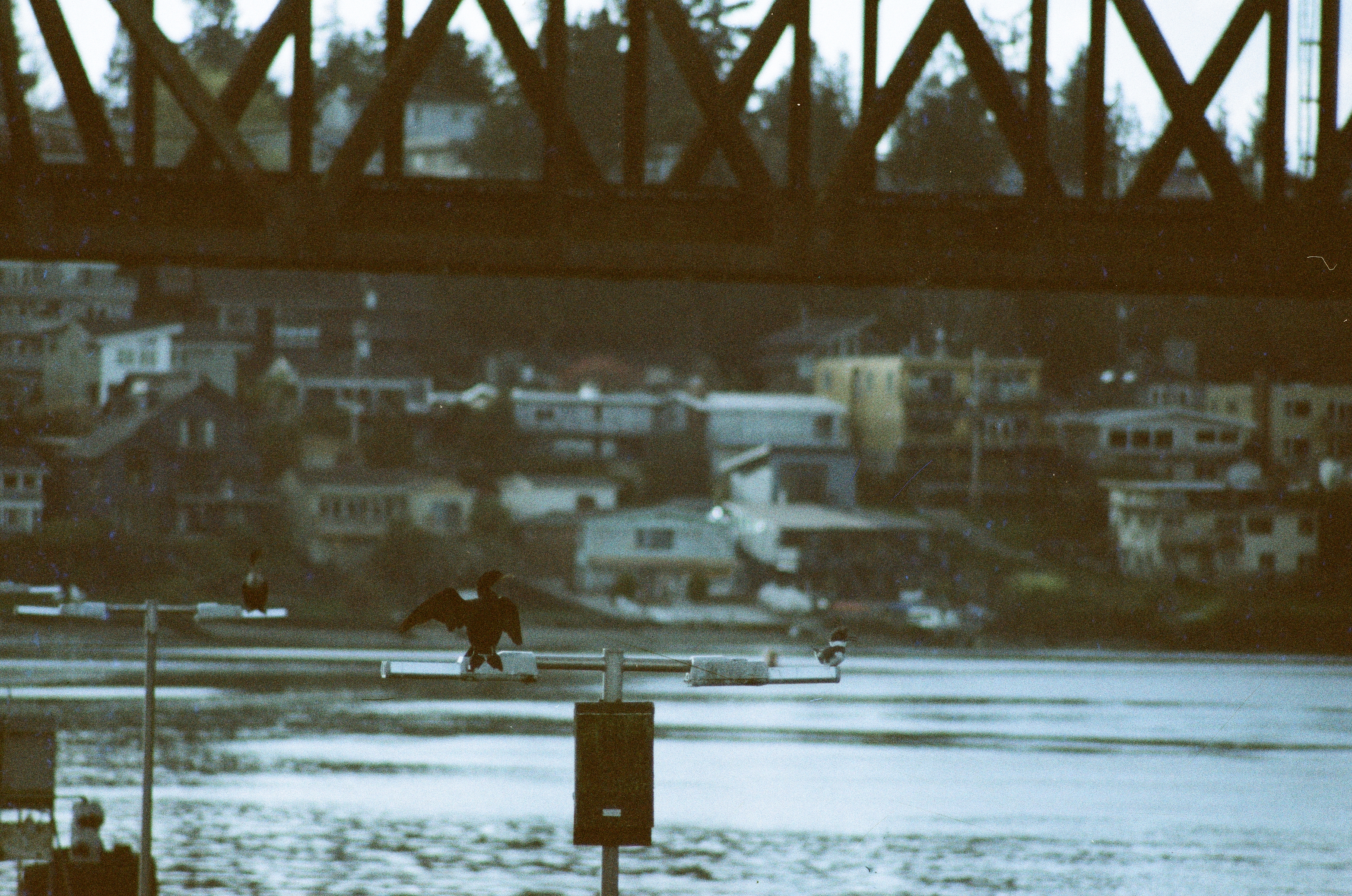 cormorant and kingfisher - minolta x-700, minolta MD 300 mm f4.5 lens, wolfen NC 400 film