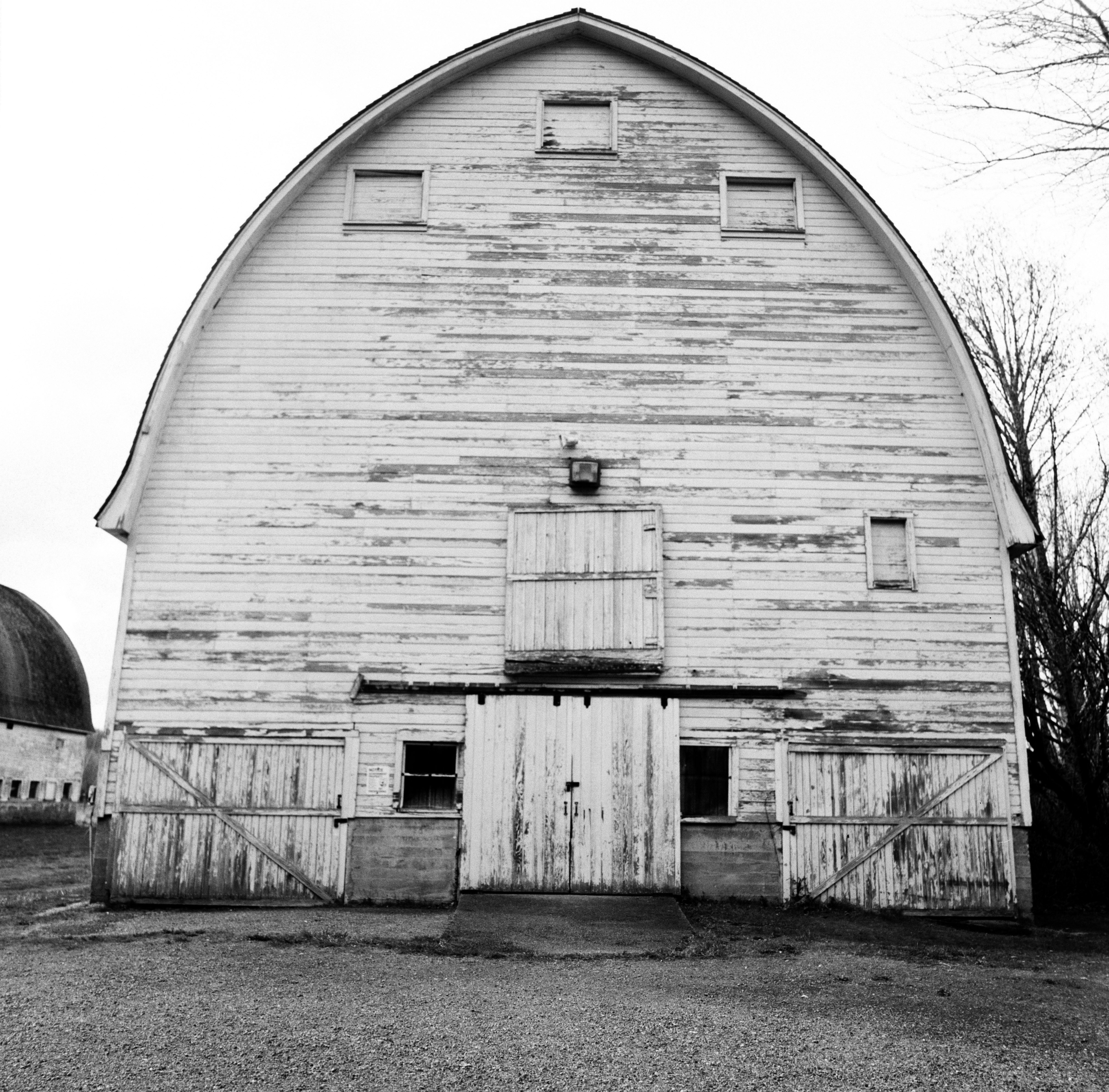 barn - hasselblad 500c, zeiss distagon f4 50mm, cinestill 400D film accidentally processed as black and white (again)